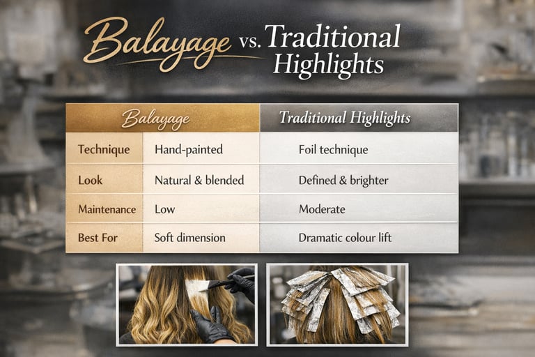 Hair colour trends have evolved a lot in recent years. Two of the most popular techniques today are Balayage and Traditional Highlights. Both can transform your look beautifully, but the right choice depends on your hair type, lifestyle, and the final effect you want.